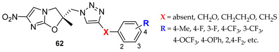 Showalter, H.D. Recent Progress in the Discovery and Development of 2-Nitroimidazooxazines and 6-Nitroimidazooxazoles to Treat Tuberculosis and Neglected Tropical Diseases. Molecules 2020, 25, 4137. https://doi.org/10.3390/molecules25184137
