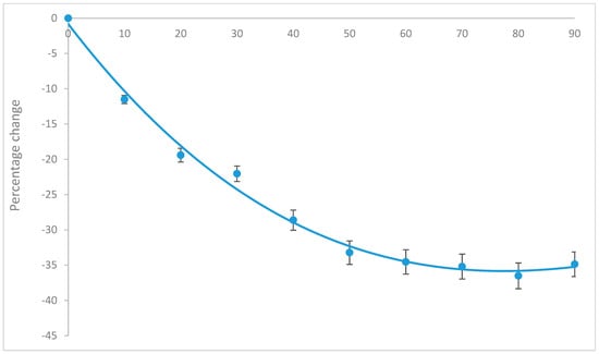 Glutathione extracted from biological samples (cardiac, liver, whole blood or serum) may contain other substances, including trace metals, which may interact with, and compromise the stability of GSH. To explore the extent to which GSH measurement may be modified in biological samples, PCA extract from 200 mg cardiac tissue was incubated at 4 °C for varying time periods, and GSH was measured. The data revealed that after 60 min, the concentrations of GSH in extracts were reduced by approximately 35% (Figure 6) possibly due to auto-oxidation shown in Figure 5.