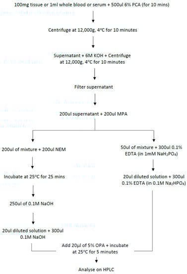 Sample derivatisation was carried out according to a modification of method of Kander et al. [31]. In addition, protein crash with 200 μL 10% metaphosphoric acid (MPA) added to the filtered sample supernatant at 4 °C was performed to minimise HPLC fouling.