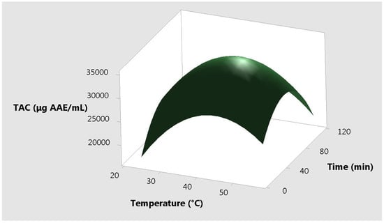 Surface plot of the total antioxidant capacity vs. time and temperature.