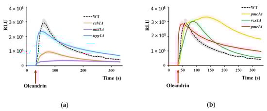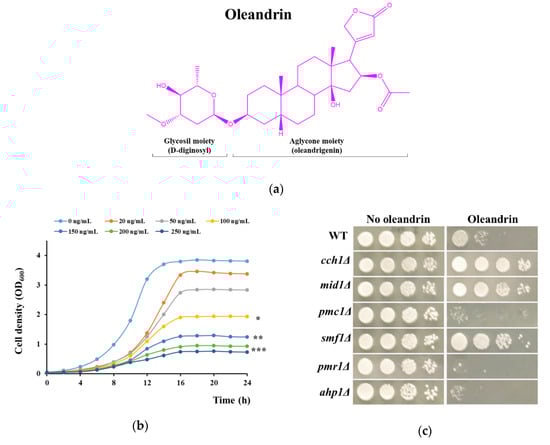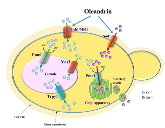 Ruta, L.L.; Popa, C.V.; Farcasanu, I.C. Cytotoxicity of Oleandrin Is Mediated by Calcium Influx and by Increased Manganese Uptake in Saccharomyces cerevisiae Cells. Molecules 2020, 25, 4259. https://doi.org/10.3390/molecules25184259