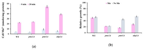 - Farcasanu, I.C.; Hirata, D.; Tsuchiya, E.; Mizuta, K.; Miyakawa, T. Involvement of thioredoxin peroxidase type II (Ahp1p) of Saccharomyces cerevisiae in Mn2+ homeostasis. Biosci. Biotechnol. Biochem. 1999, 63, 1871–1881. [Google Scholar] [CrossRef][Green Version]