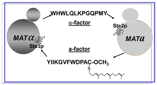 - Sen, M.; Marsh, L. Noncontiguous domains of the alpha-factor receptor of yeasts confer ligand specificity. J. Biol. Chem. 1994, 269, 968–973. [Google Scholar] [PubMed]