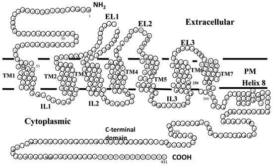 - Sato, T.; Kawasaki, T.; Mine, S.; Matsumura, H. Functional Role of the C-Terminal Amphipathic Helix 8 of Olfactory Receptors and Other G Protein-Coupled Receptors. Int. J. Mol. Sci. 2016, 17, 1930. [Google Scholar] [CrossRef] [PubMed]