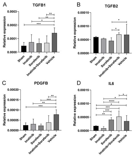 2.1.4. Effects of Imatinib and Sorafenib on the Expression of Transforming Growth Factor Beta (TFGFB)1 and TGFB2 and of Platelet-Derived Growth Factor (PDGF)