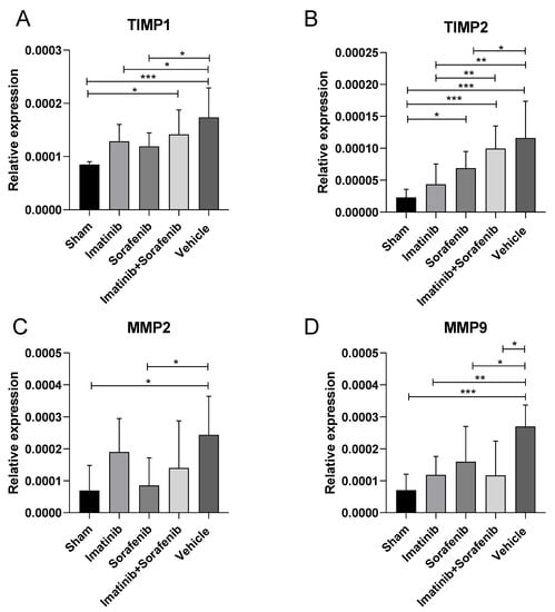 2.1.6. Effects of Imatinib and Sorafenib on the Expression of Tissue Inhibitor Metalloproteinases (TIMP)1, TIMP2, Matrix Metallopeptidase (MMP)2, and MMP9