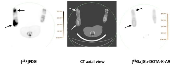 [68Ga]Ga-DOTA-K-A9 compared to [18F]FDG.