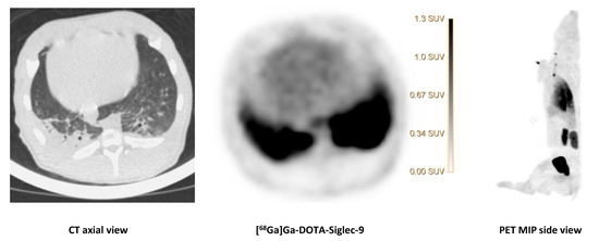 [68Ga]Ga-DOTA-Siglec-9 uptake in the lungs.