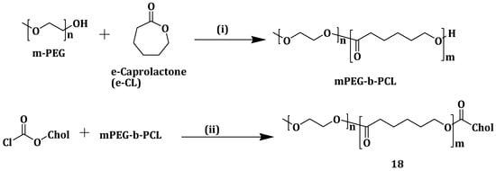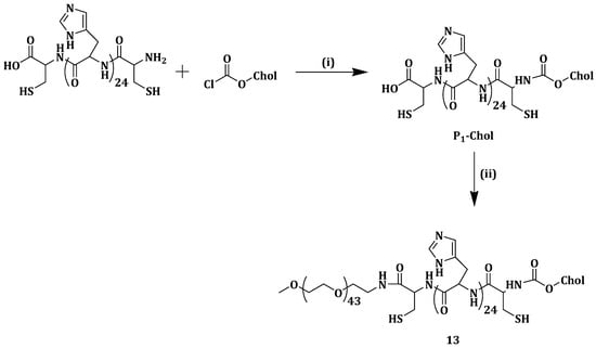 80]. In their quest for a novel hydrophobic pH-sensitive drug carrier with lower toxicity and higher efficiency, Yang et al. designed and synthesized three triblock copolymers poly(ethylene glycol) methyl ether-b-peptide-g-cholesterol (mPEG-b-P-g-Chol) (
