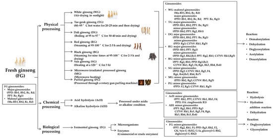 Piao XM, Huo Y, Kang JP, Mathiyalagan R, Zhang H, Yang DU, Kim M, Yang DC, Kang SC, Wang YP. Diversity of Ginsenoside Profiles Produced by Various Processing Technologies. Molecules. 2020; 25(19):4390. https://doi.org/10.3390/molecules25194390