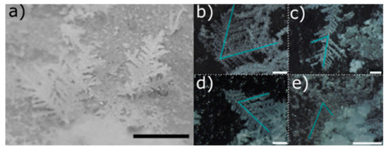 Figure 1b) stemming from the same point on the surface, forming an angle of 60°. In all dendrites, we observed the same value of the angle (60°) between the principal and secondary branches (