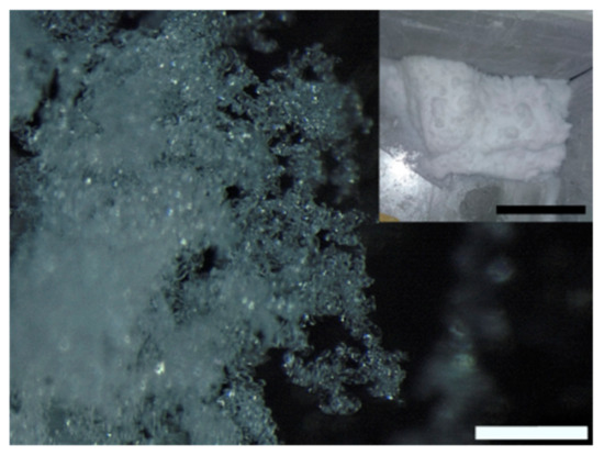 Figure 4), therefore a supersaturated water vapor environment is locally created. In such conditions dendritic snow crystals nucleate and grow from supersaturated vapor. The morphology of the crystals grown on the side walls is determined by the temperature conditions of the surrounding air. In our case, we obtained dendritic crystals with an average air temperature of −15 °C, in agreement with the observations reported in the Nakaya morphology diagram [