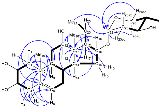 - Haraguchi, M.; Motidome, M.; Morita, H.; Takeya, K.; Itokawa, H.; Mimaki, Y.; Sashida, Y. New polyhydroxylated steroidal sapogenin and saponin from the leaves of Cestrum sendtenerianum. Chem. Pharm. Bull. 1999, 47, 582–584. [Google Scholar] [CrossRef][Green Version]