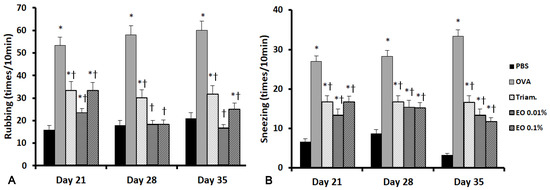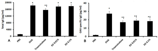 2.2. Effects of EOCO on Total Serum IgE and OVA-Specific IgE Levels