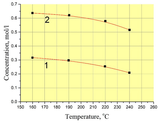 Using the retrograde temperature gradient hydrothermal method at temperatures up to 250 °C, it is impossible or very difficult to maintain a given supersaturation of the solution all times of the run and as a result, reproducibility of such experiments has a low level. The slow temperature rise hydrothermal method is limited by GaPO4 solubility [8,29]. The constant value of GaPO4 solubility in aqueous acid solutions (H3PO4, H2SO4, HCl and their mixtures) in the temperature range from 200 to 260 °C (Figure 1) completely excludes using of this method at temperatures higher than 180 °C [30].