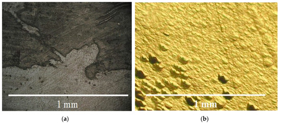 Crystal growth of all trigonal rhombohedron and trigonal dipyramid faces was presented by layer or dislocation mechanism. Stairs (Figure 7a) and low hillocks (Figure 7b) were present on the rhombohedron faces. Propagation of Brazil twins from seed was observed in sectors of the rhombohedron faces (Figure 8a–d). Any gas–liquid inclusions, dislocations and cracks (see Figure 8b–d) were not typical for sectors of the rhombohedron face growth of GaPO4 crystals.