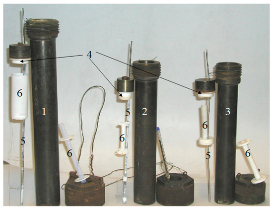 (1,2) Ta- and (3) Pt-lined steel autoclaves with PTFE cover; (4) autoclaves equipped with an (5) internal temperature control probe and (6) PTFE nutrient basket. Pen for scale.
