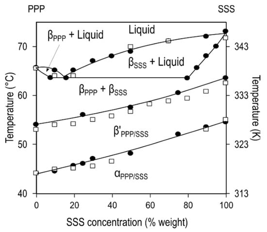 140]. Likewise, POP/POS and POP/SOS systems exhibited a binary eutectic diagram with respective solid-solid-liquid equilibrium points situated at a Χ