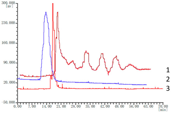 HSCCC chromatogram of Psoralea corylifolia L. (1), Abutilon theophrasti Medic (2), and Crotalaria pallida Ait. (3).