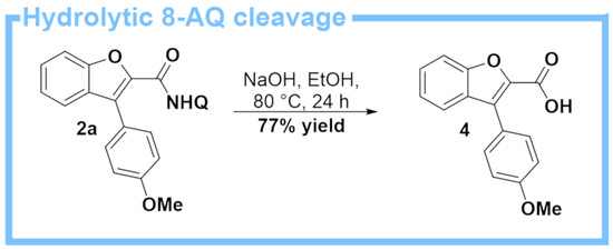 If the corresponding carboxylic acids are desired instead, it is of course also possible to remove the 8-AQ auxiliary from the C–H arylation products using the conventional hydrolytic approach. As depicted in Scheme 6 with compound 2a as the model substrate, hydrolysis to the carboxylic acid 4 can be achieved in 77% yield using NaOH in EtOH (Scheme 6).