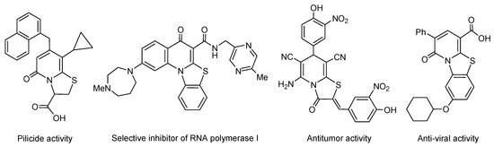 Sulfur-containing rings condensed with nitrogen heterocycles are important scaffolds for medicinal chemistry [1]. Condensed sulfur/nitrogen heterocycles have always been a vital part of new drug discovery. For example, penicillin and cephalosporin antibiotics contain sulfur-containing ring condensed with a nitrogen heterocycle as the key scaffold [1]. Thiazole ring presents in many natural and biologically active compounds including ritonavir (anti-HIV), sulfathiazole (antimicrobial), and tiazofurin (anticancer) drugs [1,2,3]. The combination of the thiazole ring with the pyridine heterocycle in one condensed molecule gives a very promising scaffold for medicinal chemistry. The thiazolopyridine derivatives are associated with a wide range of pharmacological activities. Among them, [1,3]thiazolo[3,2-a]pyridinium derivatives and structurally related compounds exhibit antitumor, antiviral, antibacterial, pilicide activity and properties of selective inhibitor of RNA polymerase I [4,5,6,7,8] (Figure 1). Selenium analogs, [1,3]selenazolo[3,2-a]pyridinium derivatives are less studied. Selenium-containing heterocycles [9,10,11,12,13] represent an important family of compounds exhibiting various types of biological activity including anti-inflammatory, antitumor, antifungal, and glutathione peroxidase-like action [12,13,14,15,16,17,18,19,20]. The selenium-containing heterocyclic drug ebselen is applied for the prevention and treatment of human ischemic stroke [21]. The development of effective approaches to novel selenium heterocycles by regioselective cyclization and annulation reactions is one of the main directions of our research [22,23,24,25,26,27,28,29,30,31].