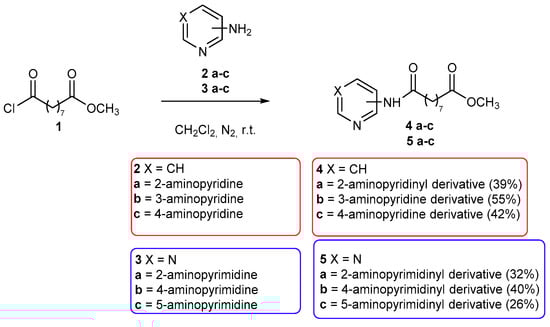 3.1.2. General Procedure for the Synthesis of Compounds 4a–c, 5a–c, 6, and 8a,b