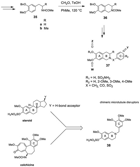 - Leese, M.P.; Jourdan, F.L.; Dohle, W.; Kimberley, M.R.; Thomas, M.P.; Bai, R.; Hamel, E.; Ferrandis, E.; Potter, B.V.L. Steroidomimetic tetrahydroisoquinolines for the design of new microtubule disruptors. ACS Med. Chem. Lett. 2012, 3, 5–9. [Google Scholar] [CrossRef] [PubMed]