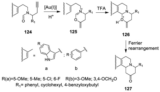 4.3.1. Au(I)-Catalyzed N-Acyliminium Cyclization Cascade