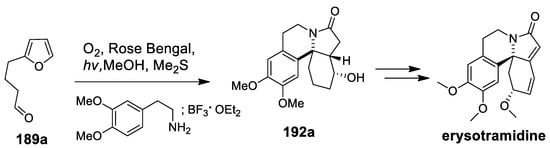 | erysotramidine | Scheme 25 | Compound 93 H3PO4 | erythrina alkaloids | [100,101] |