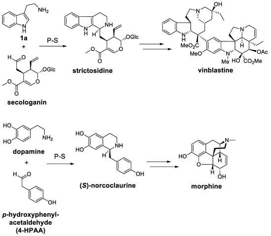 - Pesnot, T.; Gershater, M.C.; Ward, J.M.; Hailes, H.C. Phosphate mediated biomimetic synthesis of tetrahydroisoquinoline alkaloids. Chem. Commun. 2011, 47, 3242–3244. [Google Scholar] [CrossRef]