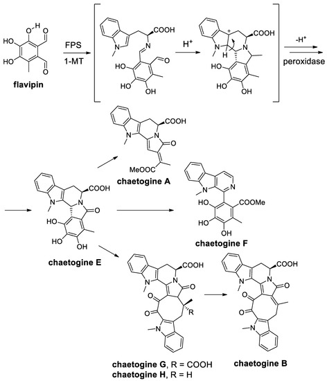 - Xu, W.; Gavia, D.J.; Tang, Y. Biosynthesis of fungal indole alkaloids. Nat. Prod. Rep. 2014, 31, 1474–1487. [Google Scholar] [CrossRef]