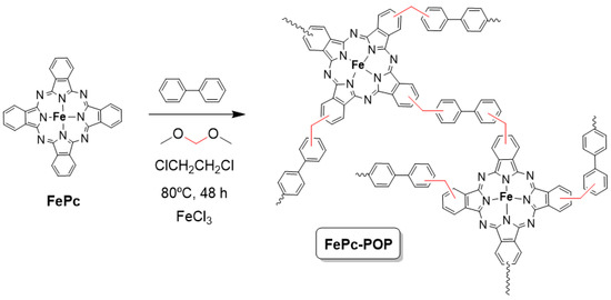 Biphenyl was purchased by Fluka with a purity > 98%; Iron (II) phthalocyanine (FePc) was supplied from TCI with a purity > 98%; Anhydrous FeCl3 was obtained from Alfa Aesar with 98% of purity; and CH2Cl2 (extra dry) was supplied by Across Organics with purities > 99.8% respectively. The other reagents and solvents were supplied by Sigma-Aldrich San Luis, MO, USA) with analytical grade. FePc-POP was prepared following the procedure reported [29].