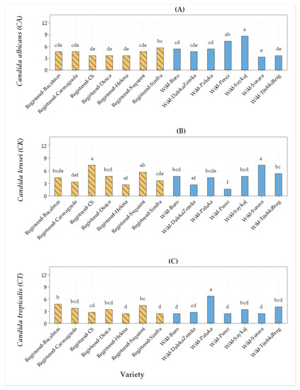 Overall, the EO of wild hemp has shown greater antimicrobial activity against Staphylococcus susp. aureus, Enterococcus faecalis, and G−Yersinia enterocolitica, Salmonella enterica subsp. enterica, and yeasts Candida albicans and Candida tropicalis compared with the EO of registered cultivars.