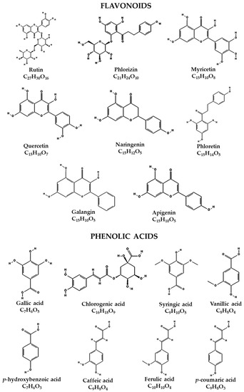 Sample Availability: Samples of the compounds flavonoids and phenolic acids listed in Table 1 are available from the authors. |