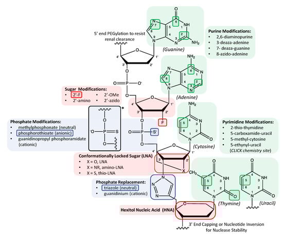 - Ni, S.; Yao, H.; Wang, L.; Lu, J.; Jiang, F.; Lu, A.; Zhang, G. Chemical modifications of nucleic acid aptamers for therapeutic purposes. Int. J. Mol. Sci. 2017, 18, 1683. [Google Scholar] [CrossRef] [PubMed]