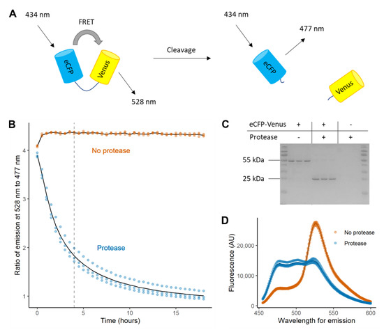 - Nagai, T.; Miyawaki, A. A high-throughput method for development of FRET-based indicators for proteolysis. Biochem. Biophys. Res. Commun. 2004, 319, 72–77. [Google Scholar] [CrossRef] [PubMed]