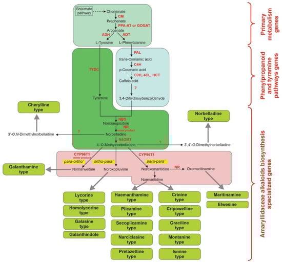 - Kilgore, M.B.; Kutchan, T.M. The amaryllidaceae alkaloids: Biosynthesis and methods for enzyme discovery. Phytochem. Rev. 2016, 15, 317–337. [Google Scholar] [CrossRef] [PubMed]
