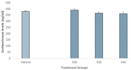 Serum corticosterone levels remained unaltered in kaempferol-treated animals as compared to vehicle control (Figure 4).