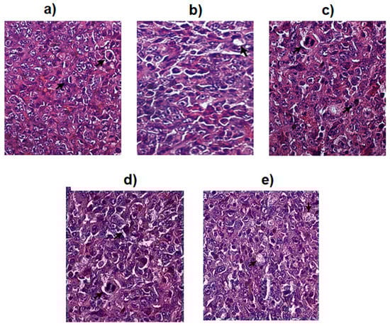 As illustrated in Figure 5a, untreated 4T1 cells showed large cell shape with firm cell nucleus, whereas the 4T1 cells treated with the extracts (Figure 5b–e) resulted in a decrease of living cell populations compared to the untreated cells. The cells appeared round and fragmented indicating a change in the cell morphology. The result indicated that Ageratum was cytotoxic to 4T1 breast cancer cells and has the potential as an anti-proliferative agent. However, further investigation is needed to confirm that these changes that caused the cell death are due to the process of either necrosis, apoptosis, or the proliferation inhibition.