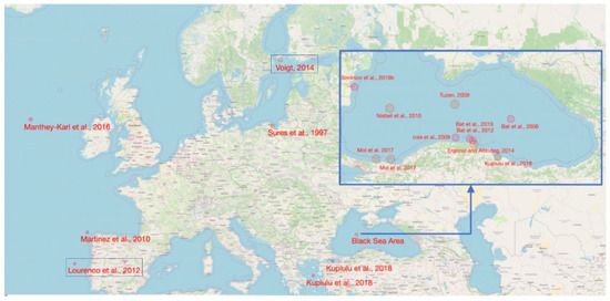 - Simionov, I.A.; Cristea, V.; Petrea, Ş.M.; Sîrbu, E.B. Evaluation of heavy metals concentration dynamics in fish from the black sea coastal area: An overview. Environ. Eng. Manag. J. 2019. [Google Scholar] [CrossRef]