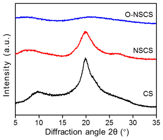The X-ray diffraction patterns of CS, NSCS, and O-NSCS.