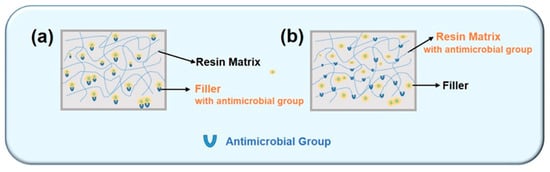 Two types of antimicrobial dental resin composite: (a) Filler-type and (b) resin-type.