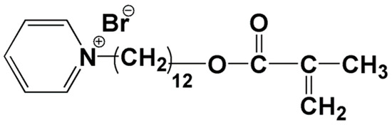 Methacryloyloxydodecylpyridinium bromide (MDPB) (Figure 2) is one of the most important monomers for the development of antimicrobial dental resin composite, which was synthesized on the basis of hydroxydodecylpyridinium bromide, an antimicrobial agent [7]. By adding a methacryloyl group, MDPB was ascribed both antimicrobial properties and polymerizable abilities. When formulated into a dental filling composite composed of 2,2-bis[4-(3-methacryloxy-2-hydroxypropoxy) phenylpropane (Bis-GMA), triethyleneglycoldimethacrylate (TEGDMA) and dimethylaminoethylmethacrylate (DMAEMA) at the weight percent of 0.1% and 0.2%, respectively, MDPB could successfully copolymerize with the typical methacrylates to produce nonreleasing antibacterial effects. Except for dental filling composite, MDPB was also applied into dental adhesion systems. With the practice of adding MDPB to a proprietary self-etching primer [8], the commercial dental adhesive product of Clearfil Protect Bond™ (Kuraray Co. Ltd., Japan) could be formulated with MDPB to produce both in vitro and in vivo antimicrobial results [9].