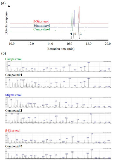 - Valitova, J.N.; Sulkarnayeva, A.G.; Minibayeva, F.V. Plant sterols: Diversity, biosynthesis, and physiological functions. Biochemistry (Moscow) 2016, 81, 819–834. [Google Scholar] [CrossRef]