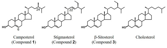 - Chaturvedula, V.S.; Prakash, I. Isolation of stigmasterol and β-sitosterol from the dichloromethane extract of Rubus suavissimus. Int. Curr. Pharm. J. 2012, 1, 239–242. [Google Scholar] [CrossRef]