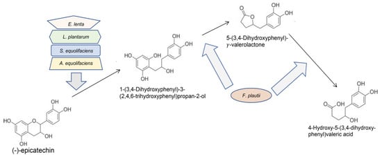 - Takagaki, A.; Nanjo, F. Bioconversion of (-)-epicatechin, (+)-epicatechin, (-)-catechin, and (+)-catechin by (-)-epigallocatechin-metabolizing bacteria. Biol. Pharm. Bull. 2015, 38, 789–794. [Google Scholar] [CrossRef]