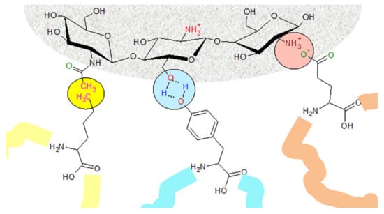 Chemical structure of chitosan on the surface of NPs, and possible interactions with proteins’ amino acids.