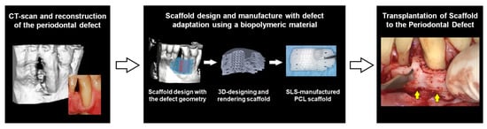 - Rasperini, G.; Pilipchuk, S.P.; Flanagan, C.L.; Park, C.H.; Pagni, G.; Hollister, S.J.; Giannobile, W.V. 3D-printed Bioresorbable Scaffold for Periodontal Repair. J. Dent. Res. 2015, 94 (Suppl. 9), 153S–157S. [Google Scholar] [CrossRef] [PubMed]