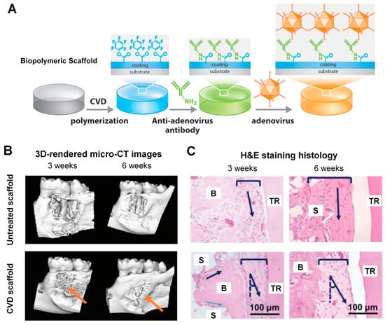 - Hu, W.W.; Elkasabi, Y.; Chen, H.Y.; Zhang, Y.; Lahann, J.; Hollister, S.J.; Krebsbach, P.H. The use of reactive polymer coatings to facilitate gene delivery from poly (epsilon-caprolactone) scaffolds. Biomaterials 2009, 30, 5785–5792. [Google Scholar] [CrossRef]