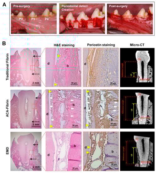 - Park, C.H.; Oh, J.H.; Jung, H.M.; Choi, Y.; Rahman, S.U.; Kim, S.; Kim, T.I.; Shin, H.I.; Lee, Y.S.; Yu, F.H.; et al. Effects of the incorporation of epsilon-aminocaproic acid/chitosan particles to fibrin on cementoblast differentiation and cementum regeneration. Acta Biomater. 2017, 61, 134–143. [Google Scholar] [CrossRef] [PubMed]